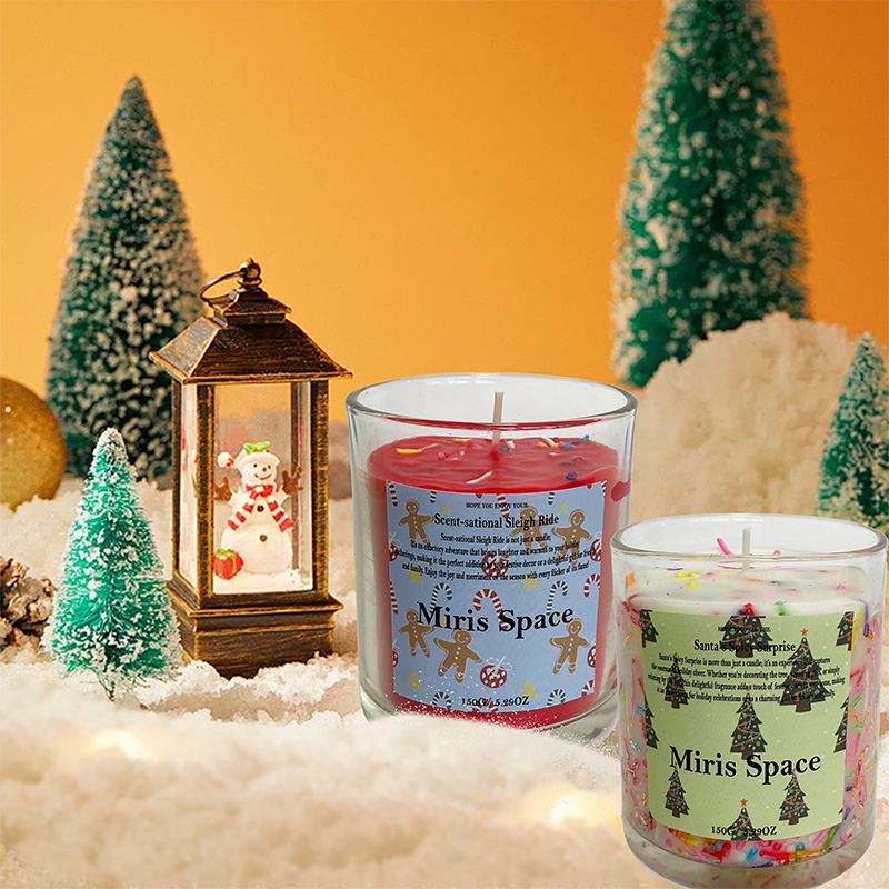Christmas Frosted Buntes Etikett Niedliches Duftkerzen-Set Festliches Ambiente Sojawachs