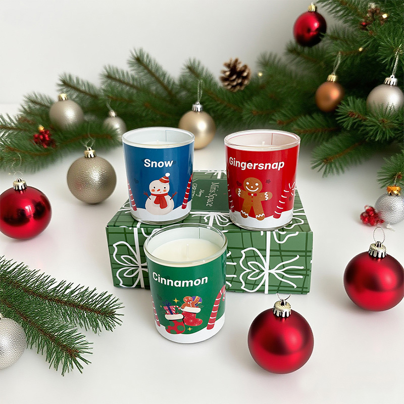 Christmas Frosted Buntes Etikett Niedliches Duftkerzen-Set Festliches Ambiente Sojawachs