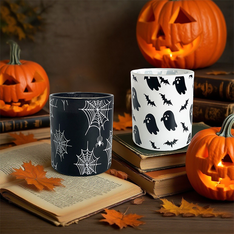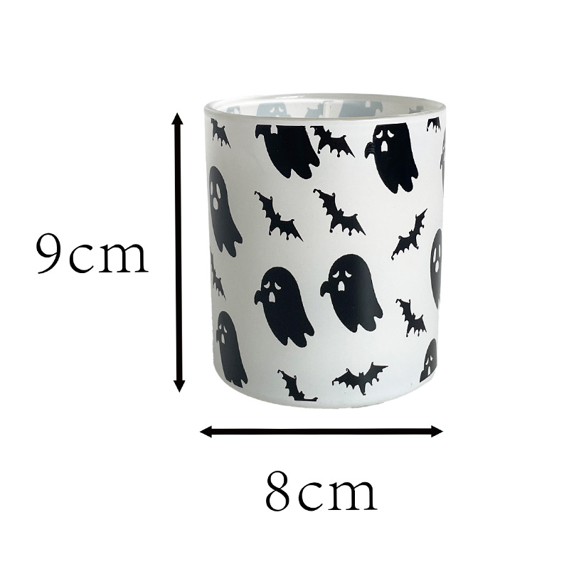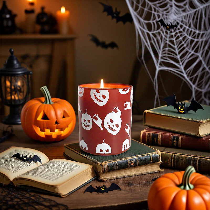 Diese Duftkerze besteht aus natürlichem Sojawachs und ist daher umweltfreundlich und gesund. Es hat einen Durchmesser von 8 cm, eine Höhe von 9 cm und ein Nettogewicht von 230 Gramm. Der Glaskörper ist mit einer Glasverpackung versehen und mit Mustern zum Thema Halloween wie Spinnen, Geister und Kürbisse bedruckt —diese Muster sind lustig und interessant.