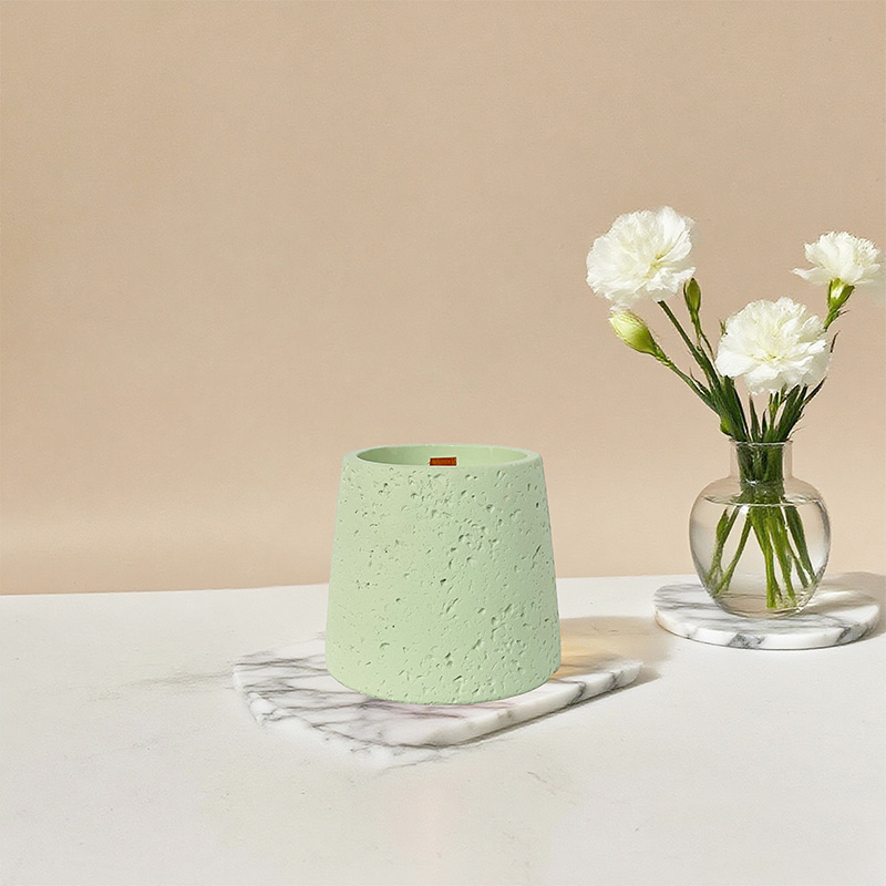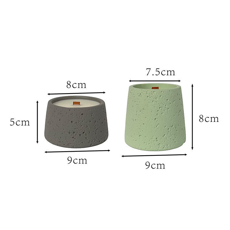 Diese Duftkerze verwendet mutig Zement im Industriestil als Behälter, erzeugt einen interessanten Kontrast zum sanften natürlichen Sojawachs im Inneren und schmiedet einen einzigartigen Stil, der minimalistisch und dennoch nischenhaft ist. Es stehen zwei Spezifikationen zur Verfügung: Eine hat ein Nettogewicht von 120 Gramm, wobei ein Zementbecher einen oberen Durchmesser von 8 cm, einen unteren Durchmesser von 9 cm und eine Höhe von 5 cm hat; die andere hat ein Nettogewicht von 195 Gramm und verfügt über einen Zementbecher mit einem oberen Durchmesser von 7,5 cm, einem unteren Durchmesser von 9 cm und einer Höhe von 8 cm. Die raue Textur des Zements bietet ein einzigartiges Tastgefühl und sein ruhiger Farbton strahlt einen starken Sinn für moderne Kunst aus.
