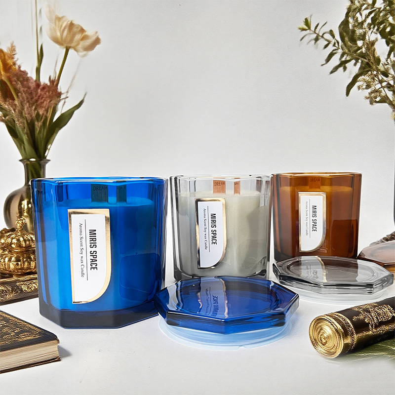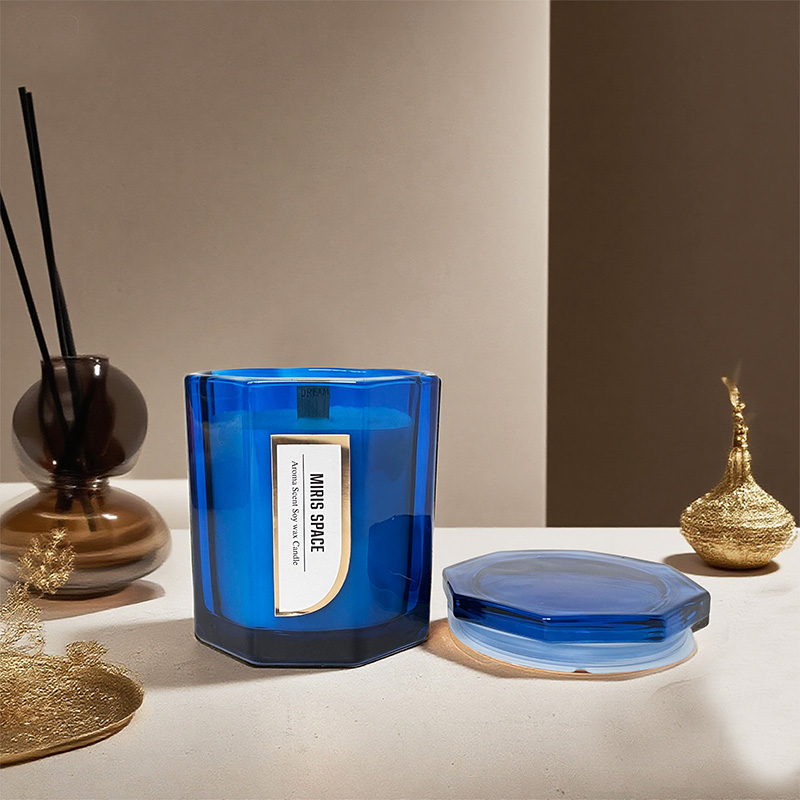 Polygonales Silberfoliendruckglas Duftkerze Custom Logo Sojawachs
