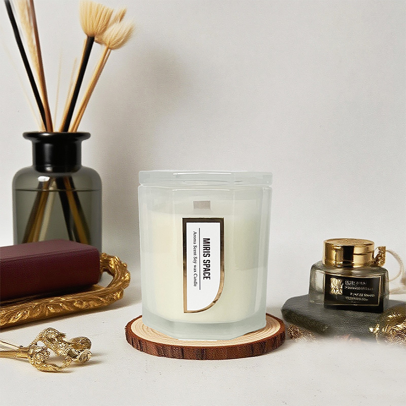 Achteckige, einfache Duftkerze mit Goldfolienetikett und natürlichem Sojawachs