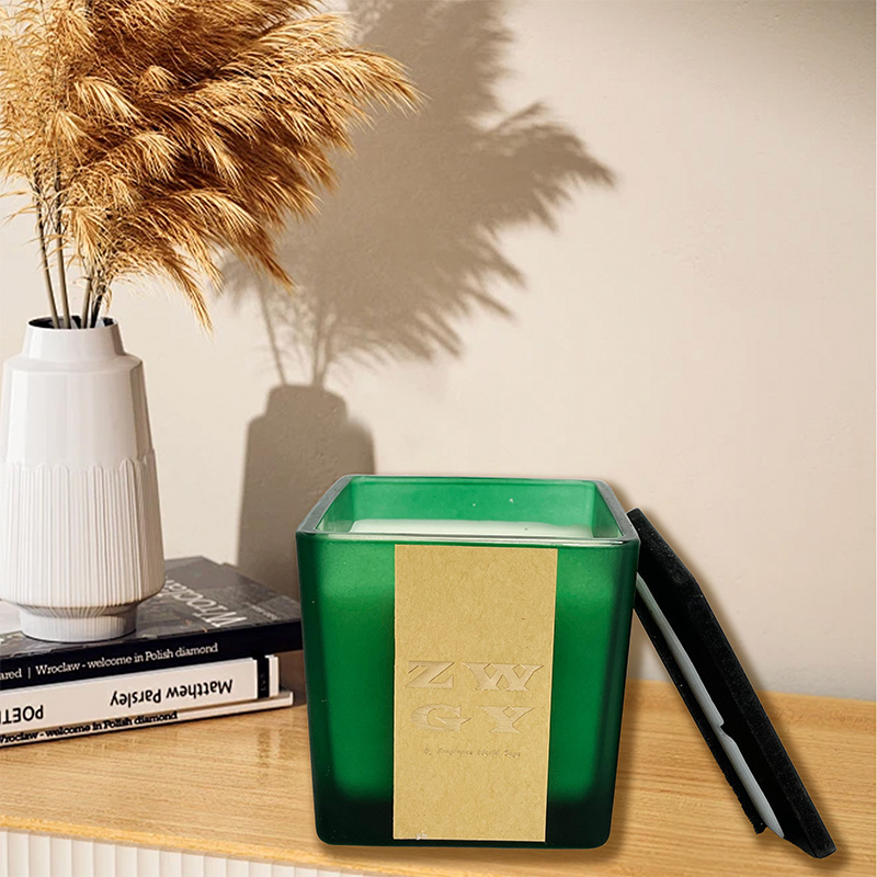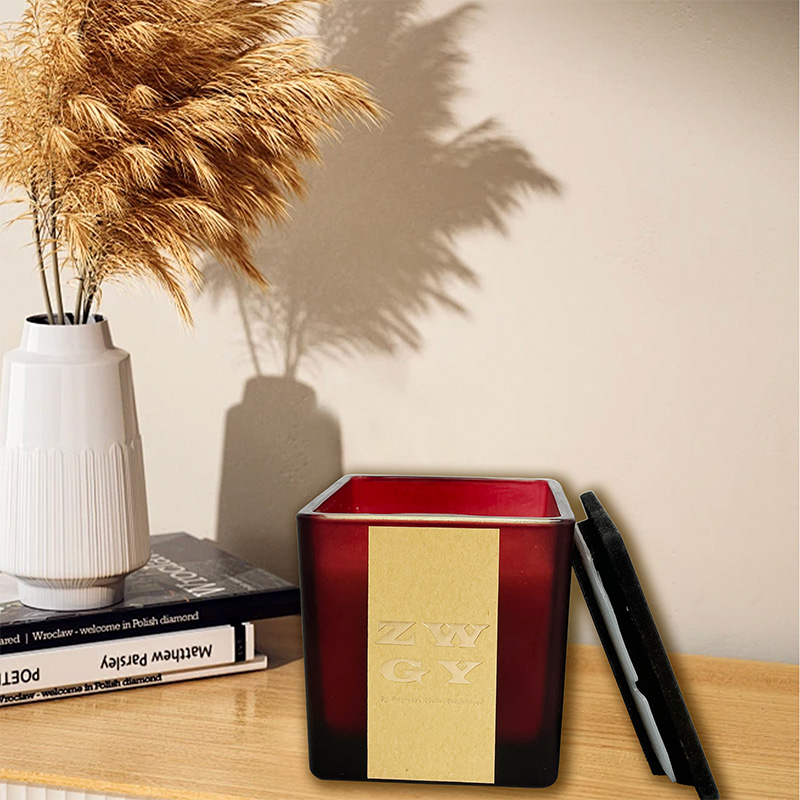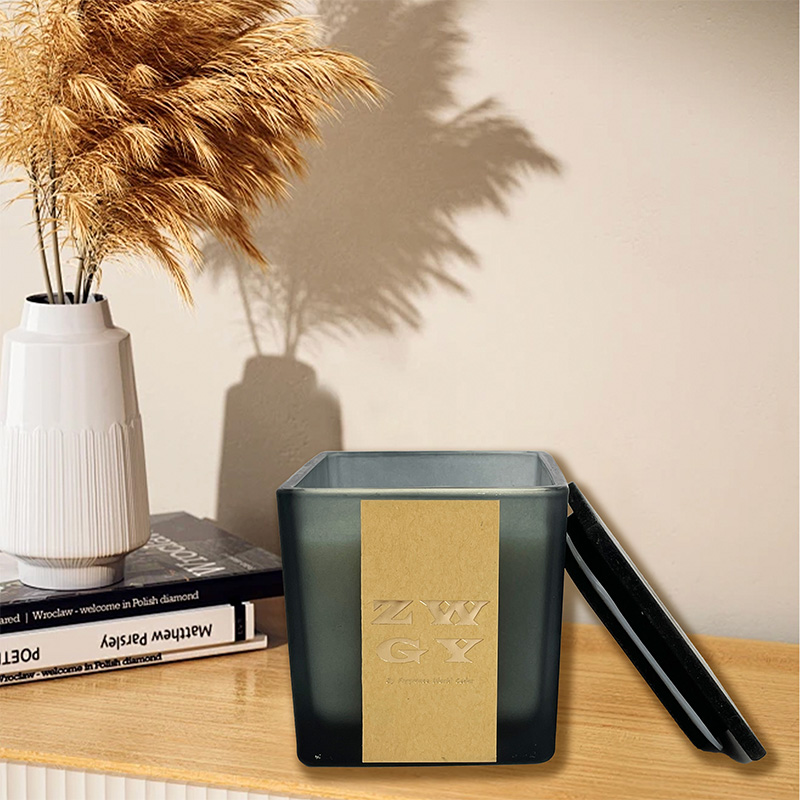 Quadratischer geschnitzter Holzdeckel Glas Duftkerze Custom Logo