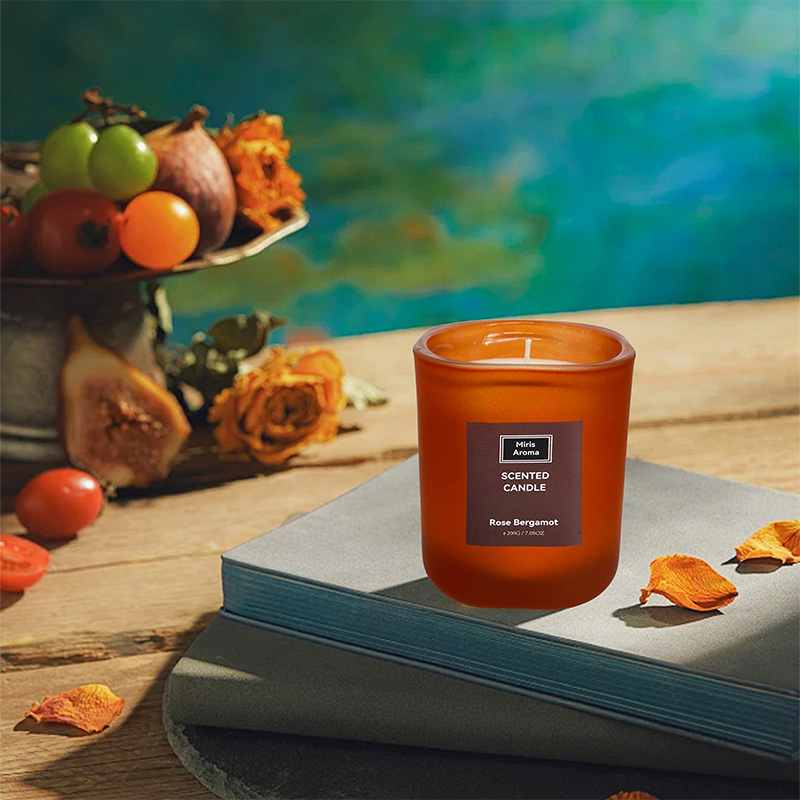 Bei dieser Duftkerze steht die Schaffung eines umfassenden High-End-Erlebnisses vom Auspacken bis zur Beleuchtung im Mittelpunkt. Ihr Kern ist eine Duftkerze im Glas mit Zuckerguss, die in einer Geschenkbox mit exquisiter Struktur platziert wird. Die Kerze hat ein Nettogewicht von 205 Gramm und misst 8 cm im Durchmesser und 9 cm in der Höhe. Der Glaskörper wird einer zarten Frostbehandlung unterzogen, die eine warme Note bietet und eine dunstige, weiche Premium-Textur aufweist, die die exquisite äußere Geschenkbox perfekt ergänzt.