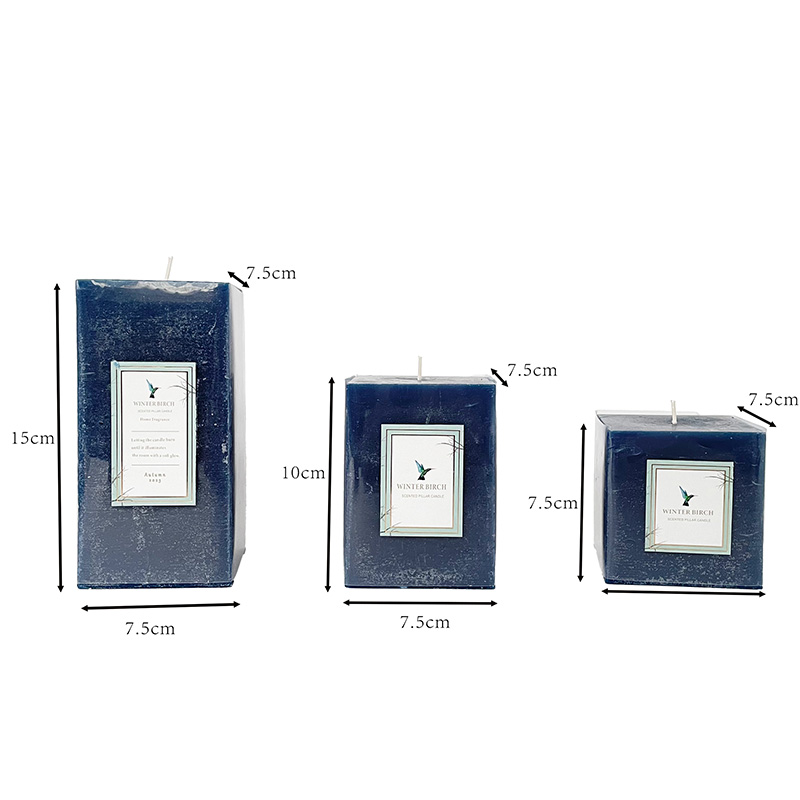 Diese Duftkerze basiert auf einem hochmodernen quadratischen Säulendesign und bietet drei Spezifikationsoptionen, die speziell für den Großhandels- und Individualisierungsmarkt hergestellt werden und alle aus natürlichem Sojawachs bestehen. Die drei Größen sind jeweils: L7,5B7,5H7,5cm (293g), L7,5B7,5H10cm (374g) und L7,5B7,5H15cm (544g). Seine klaren geraden Linien und die scharfwinklige Form verleihen ihm ein stärkeres Gefühl von Modernität und Kraft und machen es ideal für moderne Häuser, Boutiquen, Büros oder Kunstgalerien im minimalistischen Stil.