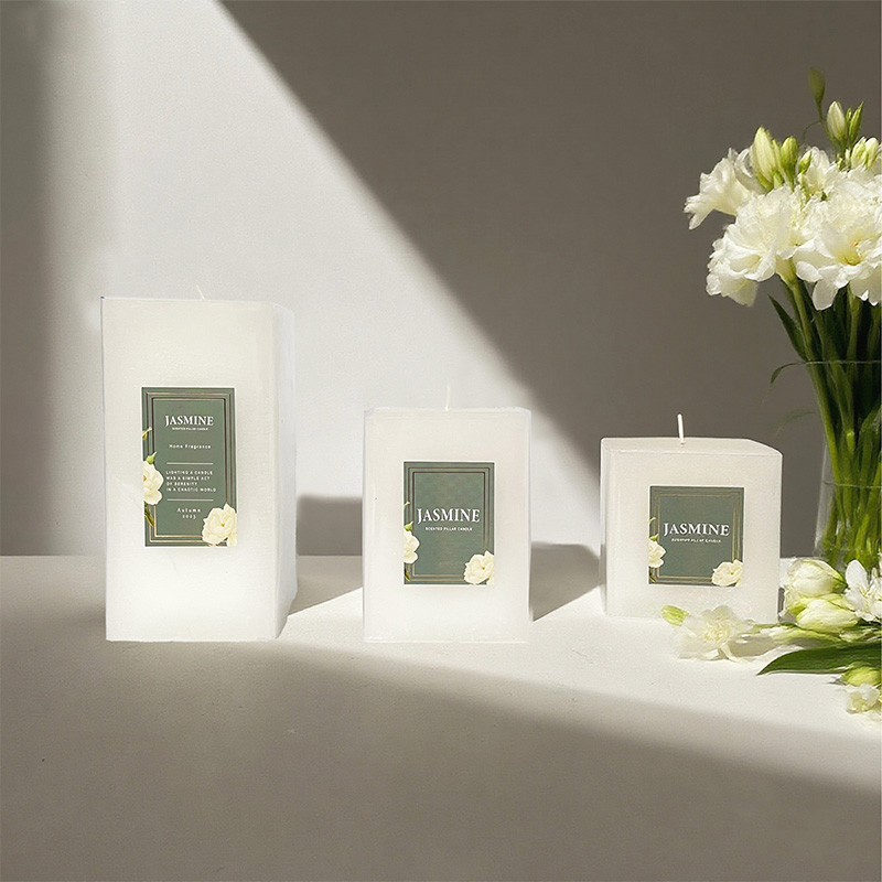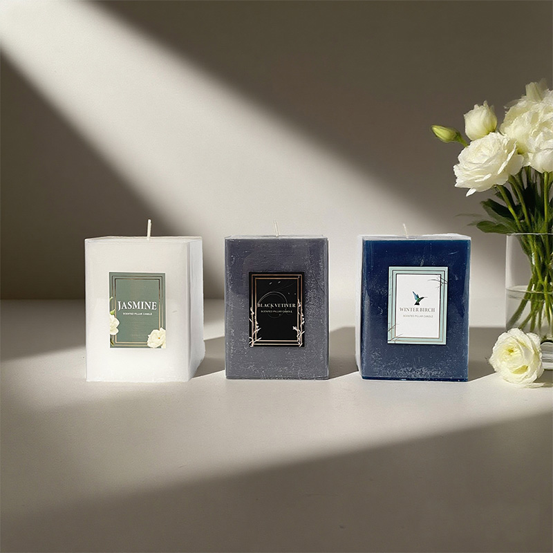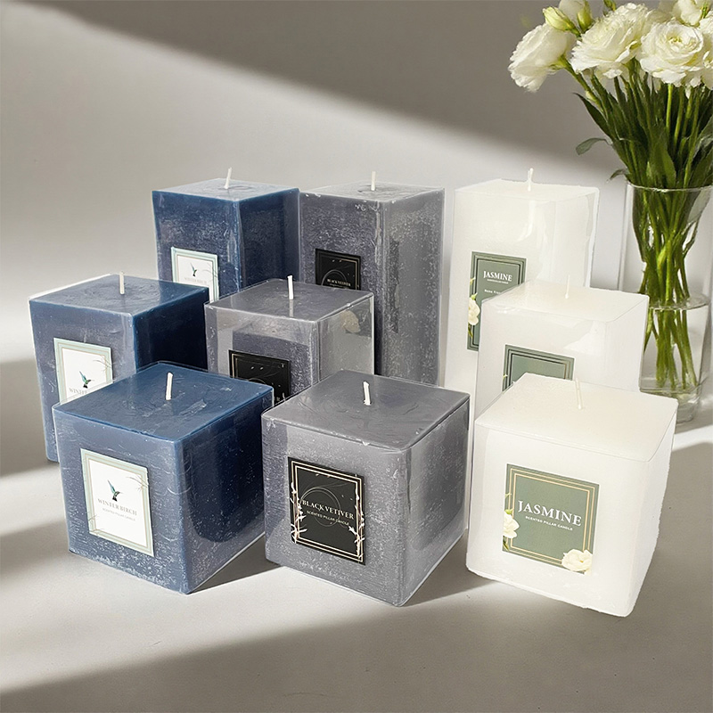 Quadratische Säule in mehreren Größen Duftkerze Sojawachs Custom Logo