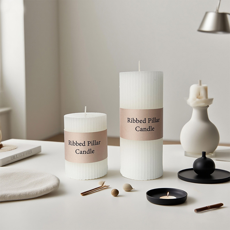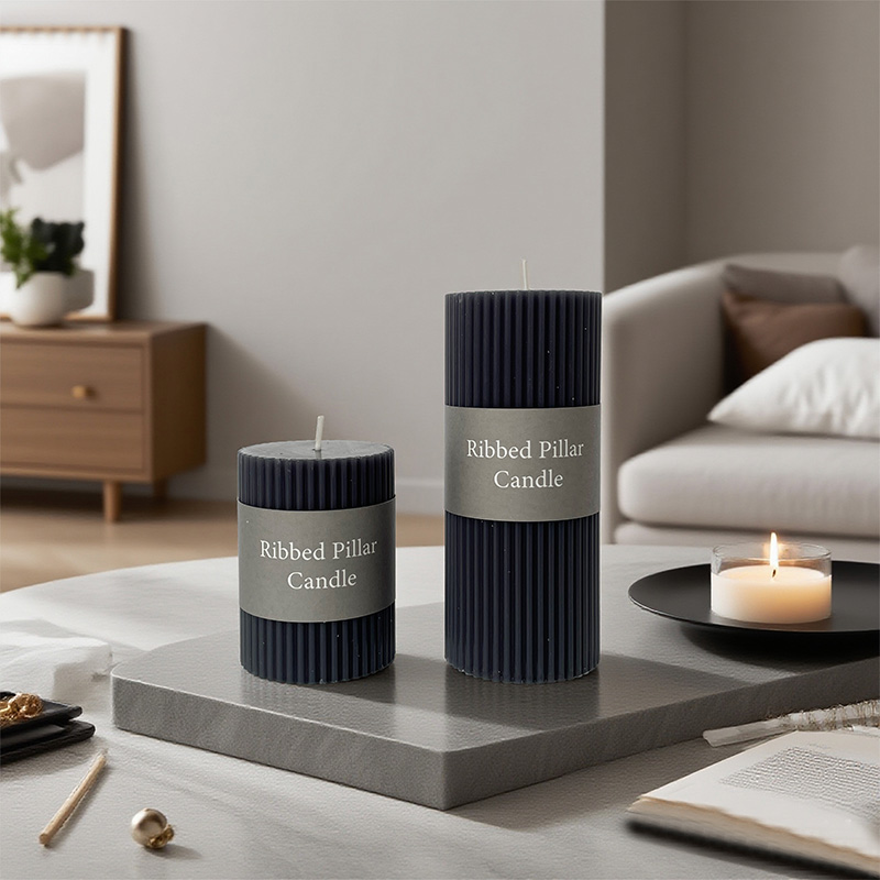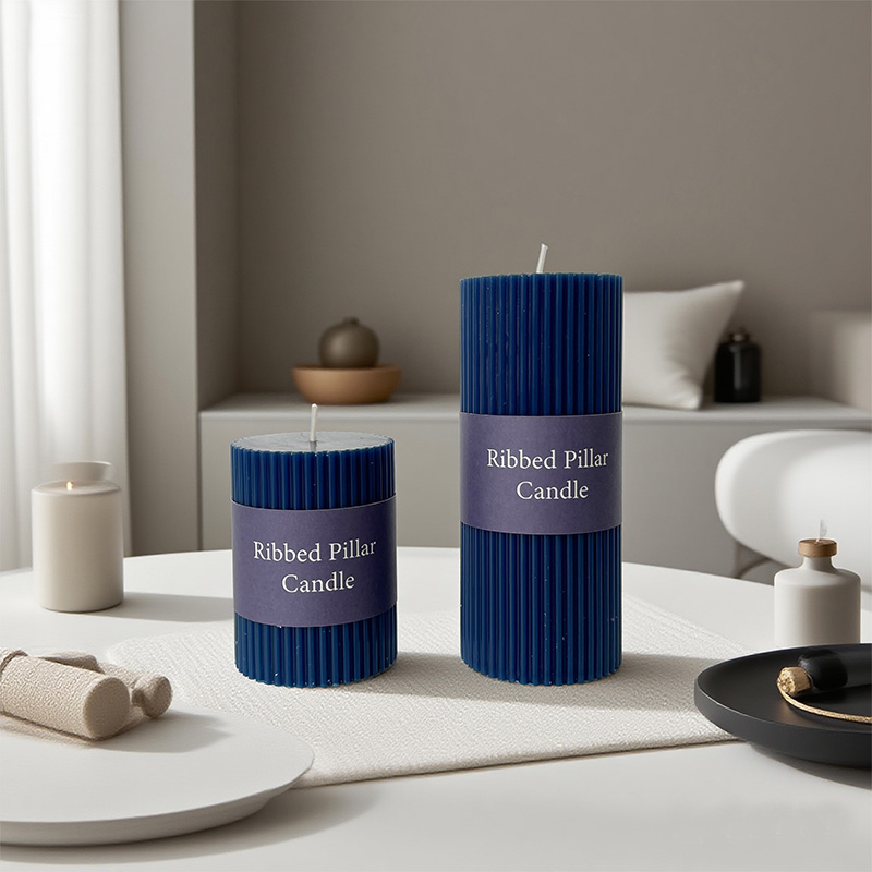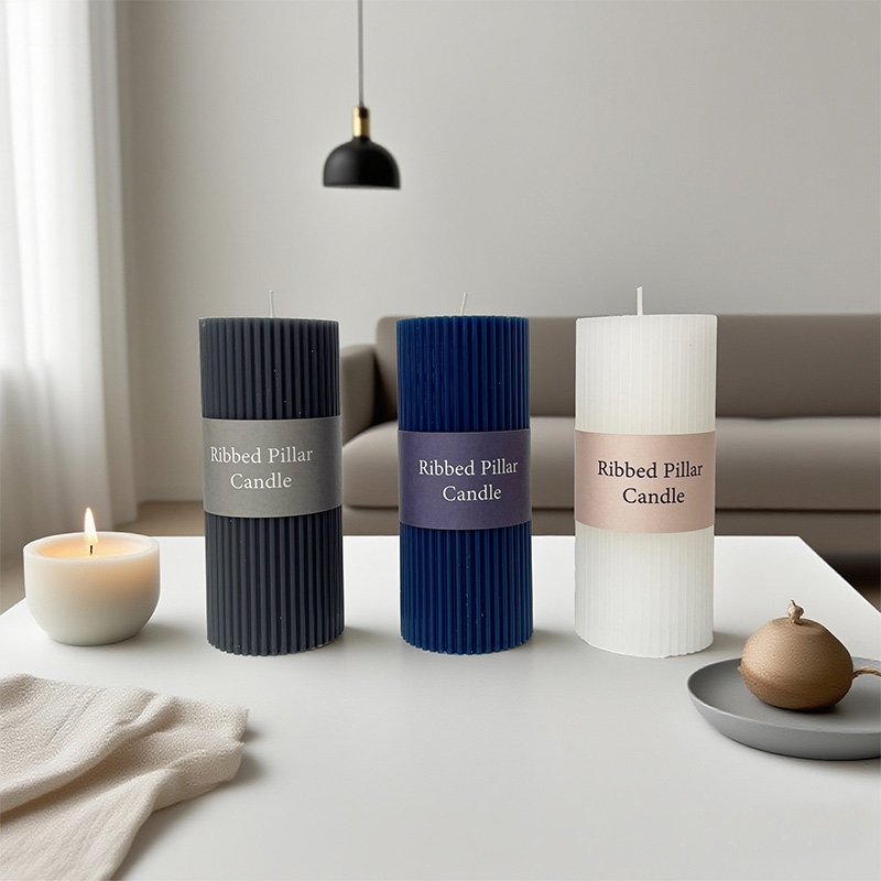 Diese Stumpenkerze kombiniert eine klassische runde Form mit eleganten vertikalen Streifen und präsentiert eine zeitlose Schönheit, die Retro- und moderne Stile vereint. Es besteht aus natürlichem Sojawachs in Großhandelsqualität. Es stehen zwei Spezifikationen zur Verfügung: eine mit einem Durchmesser von 6 cm, einer Höhe von 8 cm und einem Nettogewicht von 200 Gramm und die andere mit einem Durchmesser von 6 cm, einer Höhe von 14 cm und einem Nettogewicht von 337 Gramm. Die vertikalen Streifen, die von oben nach unten verlaufen, sind einfach und dennoch kraftvoll und verkörpern strenge Handwerkskunst und symmetrische Ästhetik.