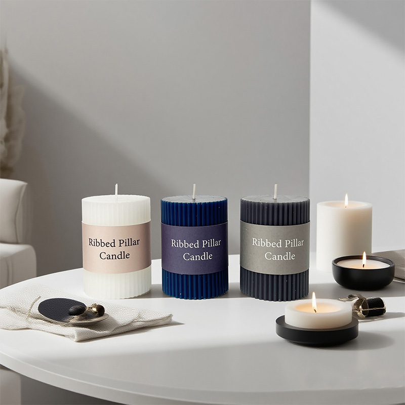Quadratische vertikale Streifen Säule Duftkerze Sojawachs Custom Logo