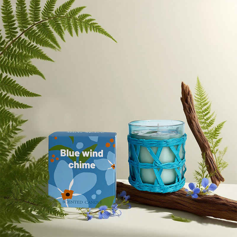 Bunte natürliche Duftkerze aus Glas mit einfachem Etikett – individuelles Logo verfügbar