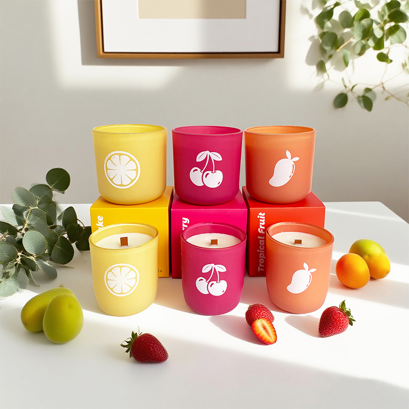 Duftkerze mit Fruchtduft im Glas – natürliches Sojawachs, individuelles Logo erhältlich