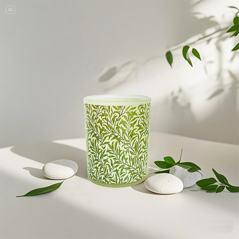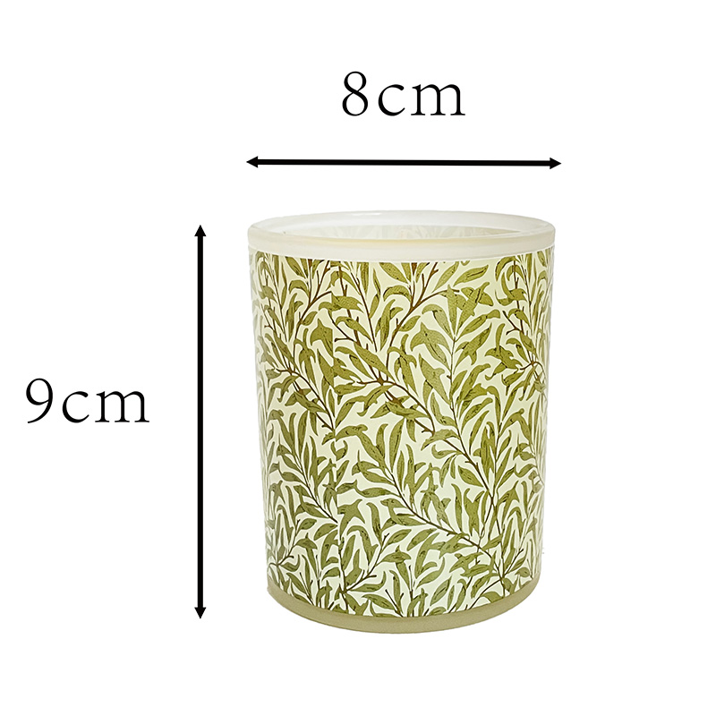 Das Glasgefäß mit frischen grünen Blattmustern kann als anpassbarer Träger dienen und den Druck von Firmenlogos unterstützen. Es eignet sich hervorragend als Geschenk mit Öko-Thema, Werbeartikel für Unternehmen, Heimdekoration oder Hotelzimmerbedarf.