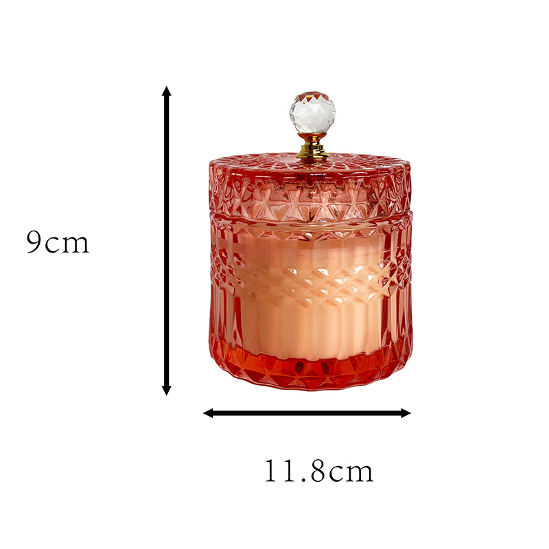 Diese Duftkerze soll ein ultimatives Luxuserlebnis schaffen. Es verfügt über ein hochtransparentes Glasgefäß mit Kristallstruktur und einem exquisiten Deckel und ist mit reinem natürlichem Sojawachs gefüllt, das sowohl aus visueller als auch aus olfaktorischer Sicht einen edlen Stil ausstrahlt. Die Kerze hat ein Nettogewicht von 183 Gramm und misst 11,8 cm im Durchmesser und 9 cm in der Höhe. Die Glaswand ist transparent und hat eine helle und schillernde Textur wie Kristall. Der mitgelieferte Deckel erleichtert die Dufterhaltung und Staubvermeidung.