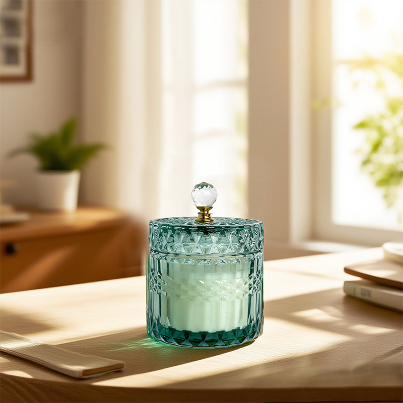 Luxuriöse Kristall-Duftkerze mit Deckel, lang anhaltender Duft, reines natürliches Sojawachs